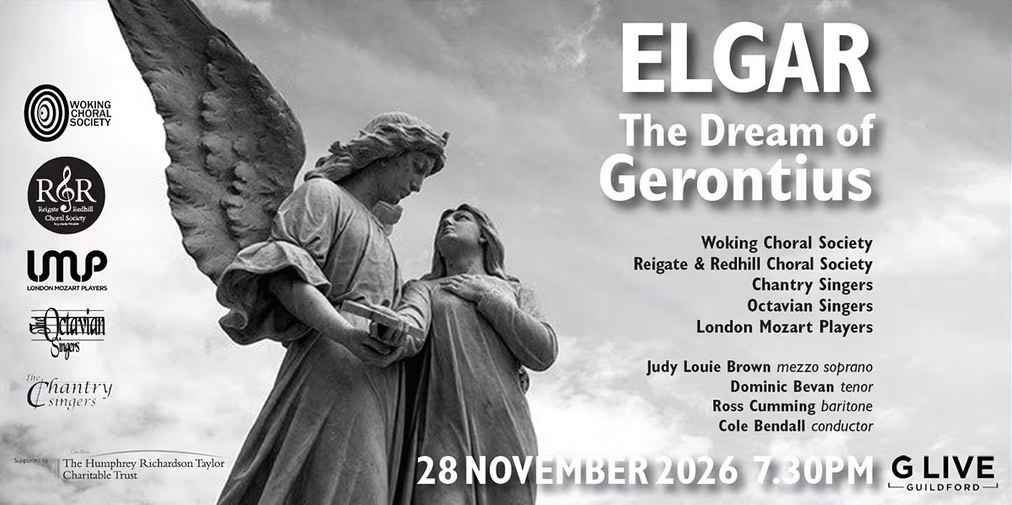 Although we have several other events coming up before then, we are already looking forward to our big joint concert with Woking Choral Society on Saturday 28 November, in G Live, Guildford - Elgar: The Dream of Gerontius, conduced by our MD, Cole Bendall