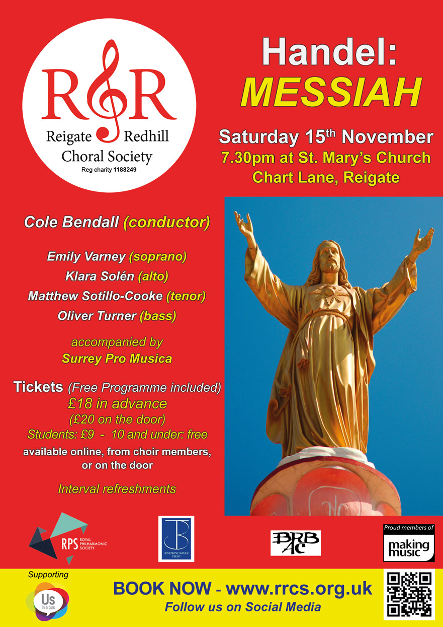 Reigate & Redhill Choral Society is excited to present, for the first time in a decade, Handel's classical favourite, MESSIAH.